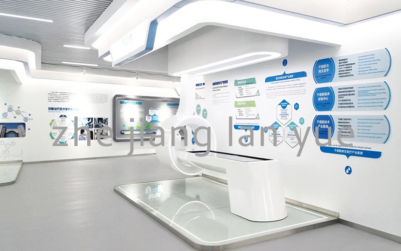创新示范基地展厅立足创新医疗理念与高科技展示手法相结合的原则,遵循大气简洁的空间视觉享受,打造成上海乃至中国智能医疗产业综合形象的展示窗口、构建智能医疗创新创业的产业生态平台、新智能医疗技术展示的一站式体验、智能医疗产业集群高地的展示与招商平台!通过声、光、电、机械、数码、信息、多媒体和网络等手段,以综合、艺术的形式展示内容。展示与医疗创新主题紧密结合,通过静态展示、动态展演、互动体验等方式,让公众在潜移默化之中感受中国智能医疗产业化发展